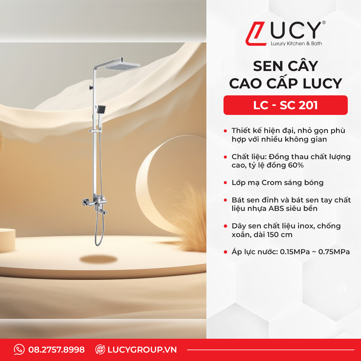 Sen cây của Lucy là một sản phẩm cao cấp, mang đến sự tiện nghi và thẩm mỹ cho không gian phòng tắm. Với thiết kế hiện đại và chất liệu bền bỉ, sản phẩm này phù hợp với nhiều phong cách nội thất khác nhau.