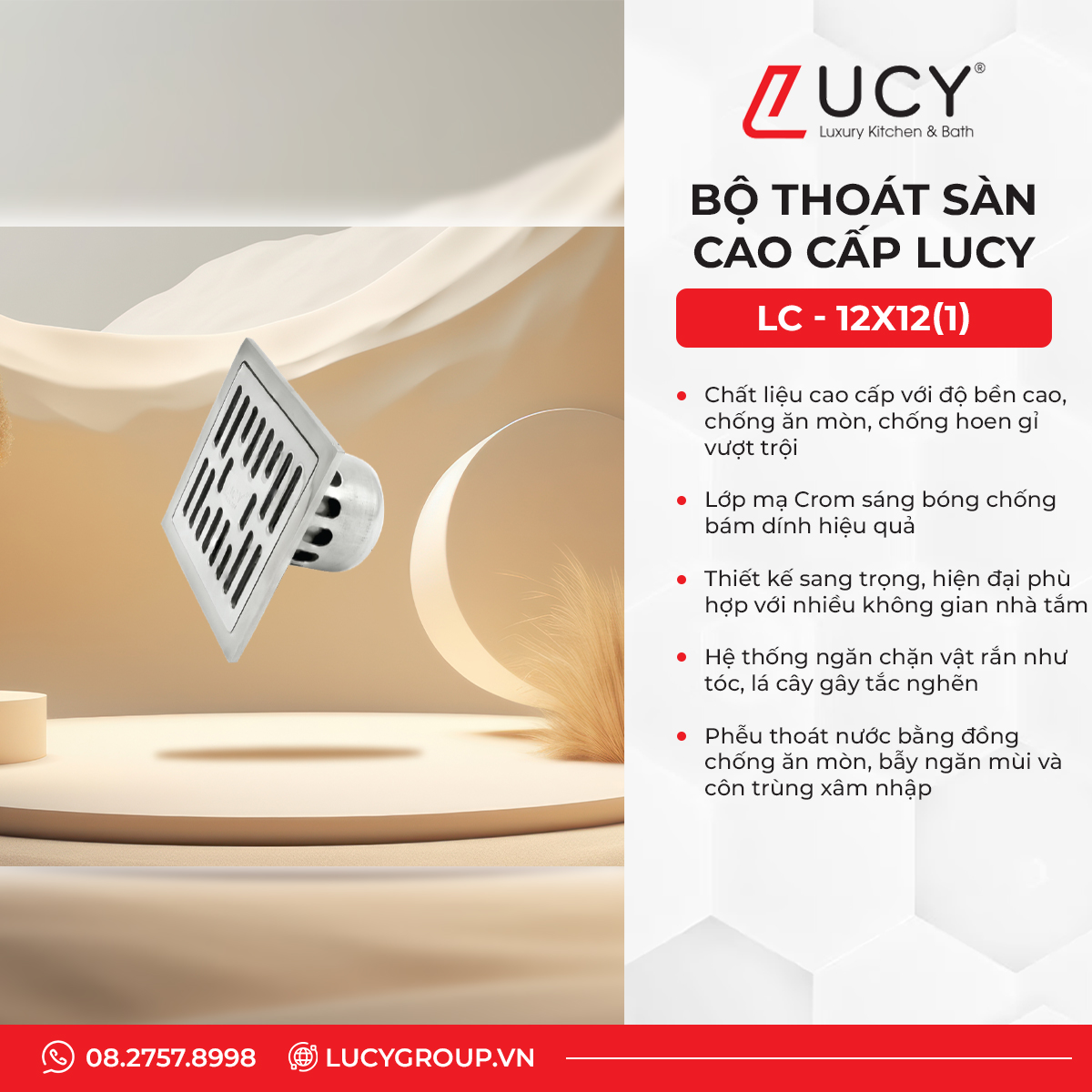 Trong bối cảnh cuộc sống ngày càng nâng cao, việc đầu tư vào các thiết bị cơ bản nhưng mang tính ứng dụng cao như thoát sàn đang được các gia đình và công trình hiện đại đặc biệt quan tâm. Một trong những sản phẩm nổi bật trong dòng thiết bị này chính là thoát sàn inox SUS 304 của Lucy Group – thương hiệu uy tín trong lĩnh vực thiết bị vệ sinh và phụ kiện nhà ở.